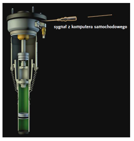 Jeśli kierowca wybierze bardziej miękką charakterystykę tłumienia, zawór będzie bardziej tak otwarty, aby więcej płynu przepływało kanałem odpowiedzialnym za miękkie ustawienie, natomiast mniej kanałem odpowiedzialnym za ustawienie twarde.