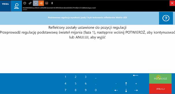 Po prawidłowym ustawieniu świateł mijania zarówno z lewej, jak i z prawej strony przechodzi się do oprogramowania IDC5 i klika: potwierdź. W tym momencie sterownik układu zapamiętuje położenie reflektora dla prawidłowo ustawionych świateł mijania (fot. 6).