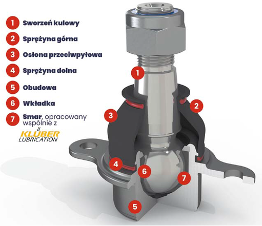 Kluczowe znaczenie dla trwałości sworznia ma stosowanie wysokiej jakości smaru, ponieważ tworzy on warstwę ochronną na wszystkich wrażliwych powierzchniach. Co więcej, dobry smar długo zachowuje swój skład i właściwości, które zapobiegają wysychaniu, zniszczeniom spowodowanym erozją.