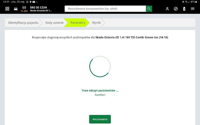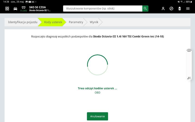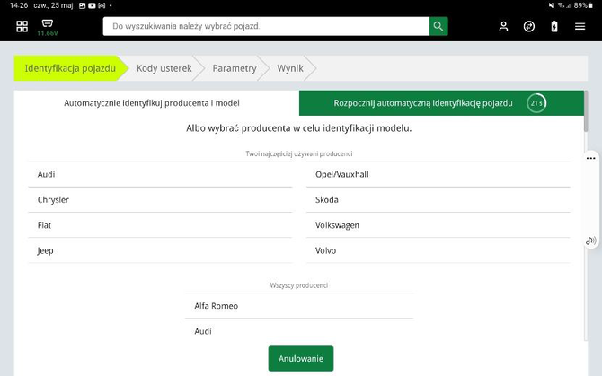 Identyfikacja pojazdu odbywa się automatycznie i bez manualnego wprowadzania danych. Model i kod silnika są rozpoznawane i wybierane przez automatyczną diagnozę