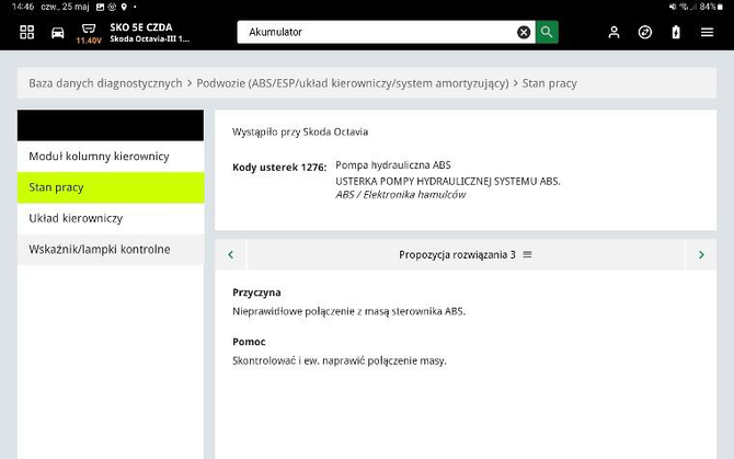 Następnie rozpoczyna się analiza kodów usterek. System AD na podstawie algorytmów wybiera parametry do dalszej diagnozy