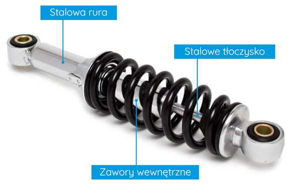 Amortyzatory gazowe dają gwarancję wydajności. Zastąpienie powietrza sprężonym azotem umożliwia szybszą reakcję układu, zapewnia dobrą przyczepność do podłoża i zmniejsza podatność na nagrzewanie.