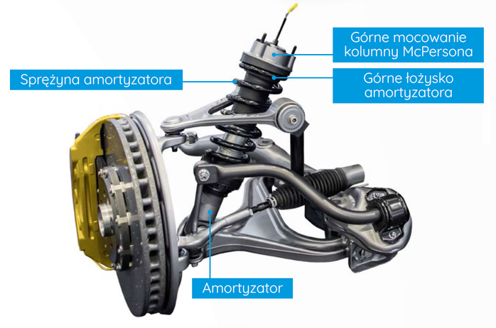 Zaprojektowany w celu pochłaniania wstrząsów zestaw „amortyzator i elementy zawieszenia” składa się z dopełniających się części, które odgrywają kluczową rolę, polegającą na: