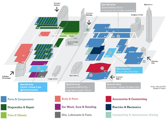 Ze względu na wysokie zainteresowanie ze strony firm, kierownictwo targów zdecydowało się otworzyć dodatkowe hale. Od 10 do 14 września wystawcy będą prezentować swoje innowacje w zakresie części zamiennych i komponentów również w hali 2 (Festhalle) oraz w hali 4.2. W halach 10.3 i 9.1 będzie miała także miejsce wystawa World of Asia, na której zostaną zaprezentowane głównie innowacje z zakresu części zamiennych i podzespołów oraz diagnostyki i napraw.