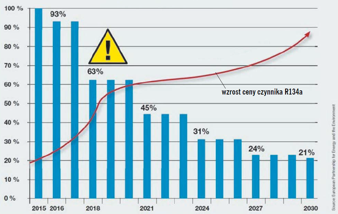 Zgodnie z wytycznymi i przyjętym harmonogramem stopniowego wycofywania czynników chłodniczych o wysokim współczynniku GWP, takich jak R134a, w 2030 r. na rynku może być dostępna jedynie jedna piąta całkowitego wolumenu sprzedaży HFC z 2014 r.
