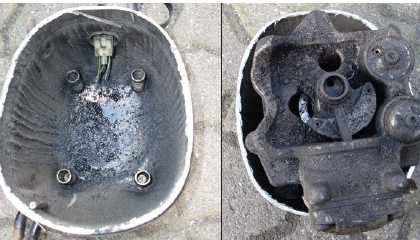 Całkowite zniszczenie sprężarki w stacji do nabijania czynnika chłodniczego