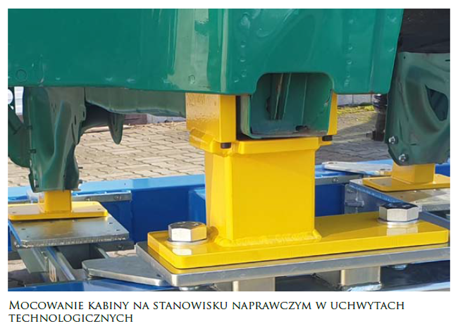 Konstrukcja tego typu urządzeń pozwala również na zastosowanie systemów uchwytów do poszczególnych modeli kabin. Uzyskuje się w ten sposób wzorzec kształtu płyty podłogowej, a w szczególności punktów mocowania zawiasów i zaczepów. Jak wiadomo, to cztery najważniejsze strefy płyty podłogowej, od których zależy, czy kabinę da się zamontować do ramy pojazdu.