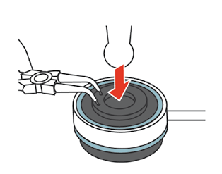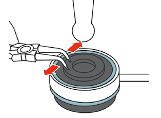 5. Wypychamy starą tuleję zewnętrzną z gniazda.