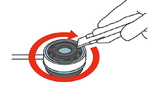 4. Wykonujemy nacięcie na wewnętrznej części tulei siedzącej w gnieździe w dwóch miejscach naprzeciw siebie. Należy uważać, aby nie naciąć gniazda.
