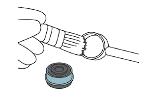 8. Nałożenie smaru grafitowego na wewnętrzną powierzchnię gniazda i zewnętrzną powierzchnię nowego wkładu Tedgum®.