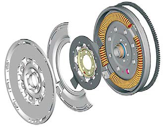 W DMF moment obrotowy silnika jest przenoszony z wału korbowego na masę główną. Stamtąd przechodzi przez sprężyny łukowe do łopatek kołnierza, a następnie – masy wtórnej. Masa wtórna przenosi go przez sprzęgło do skrzyni biegów i dalej do układu napędowego. Dzięki zintegrowanemu systemowi sprężyn i amortyzatorów, DMF pochłania prawie wszystkie drgania skrętne, zapewniając optymalne tłumienie.