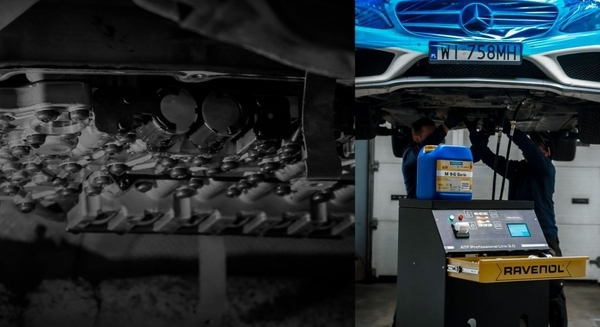 Ravenol zaleca dynamiczną wymianę oleju co około 45-60 tys. km. przy użyciu maszyny ATF Professional Line 3.0. Tylko ta metoda umożliwia wymianę do 100% oleju w skrzyni biegów, skutecznie wypłukując osady również z konwertera oraz przewodów olejowych.