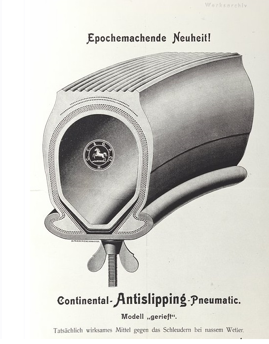 Opracowanie pierwszej na świecie opony samochodowej ze wzorem bieżnika i wprowadzenie jej na rynek 120 lat temu przez firmę Continental, było kamieniem milowy w historii całej branży automotive. Mobilność osobista była wówczas jeszcze na wczesnym etapie, ale wraz ze wzrostem liczby pojazdów, ich masy i mocy silników, wymagania dotyczące właściwości jezdnych i bezpieczeństwa stale rosły. Firma Continental zareagowała na te zapotrzebowanie rynku i wprowadziła oponę z bieżnikiem, która znacznie poprawiała przyczepność oraz skracała drogę hamowania na mokrych i brudnych drogach.