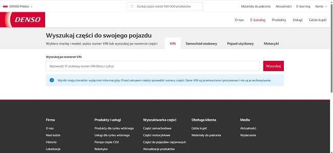 W trosce o ochronę prywatności osób przeszukujących katalog, numer VIN służy wyłącznie do identyfikacji odpowiednich części i nie jest przechowywany przez Denso w systemie. Aby szybko, dokładnie i w prosty sposób znaleźć odpowiednią część zamienną do swojego pojazdu, można wypróbować nową wyszukiwarkę VIN na stronie Denso: https://www.denso-am.eu/pl/catalog/vin.