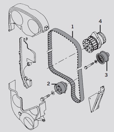 Pasek rozrządu napina się, obracając kluczem imbusowym płytkę ustalającą rolki napinacza zgodnie z ruchem wskazówek zegara. Równocześnie należy przytrzymywać kluczem sześciokątnym śrubę mocującą napinacz. Dzięki temu rolka przemieszcza się, napinając pasek. Płytkę ustalającą należy obracać aż do momentu, w którym ruchomy jej występ pokryje się z wycięciem. Wówczas można śrubę mocującą dokręcić momentem 1,9 daN.m ± 0,3.