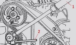 Dokręcanie śruby napinacza: 1. klucz dynamometryczny, 2. narzędzie do obracania napinacza |