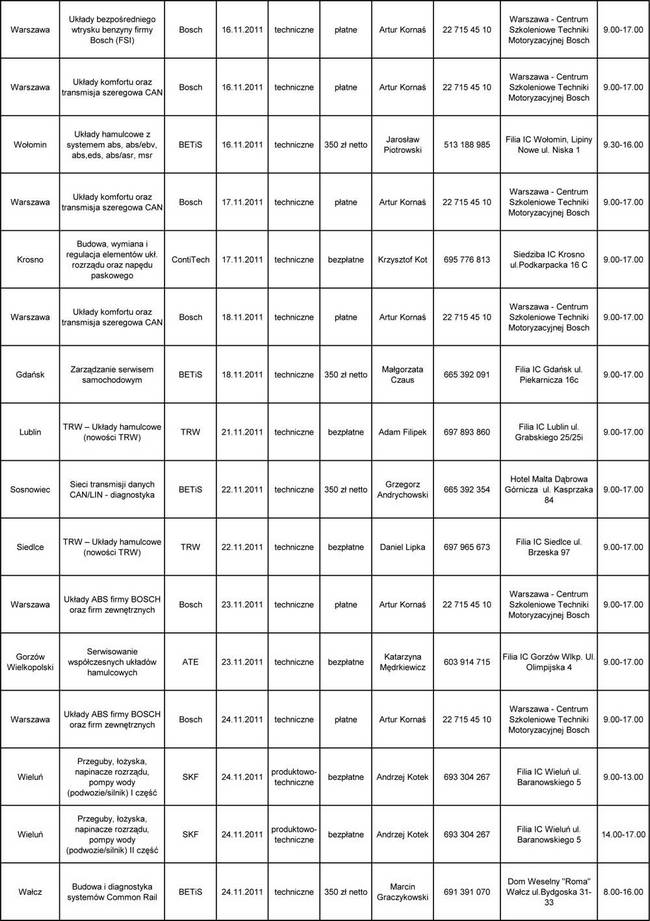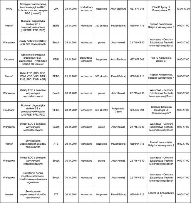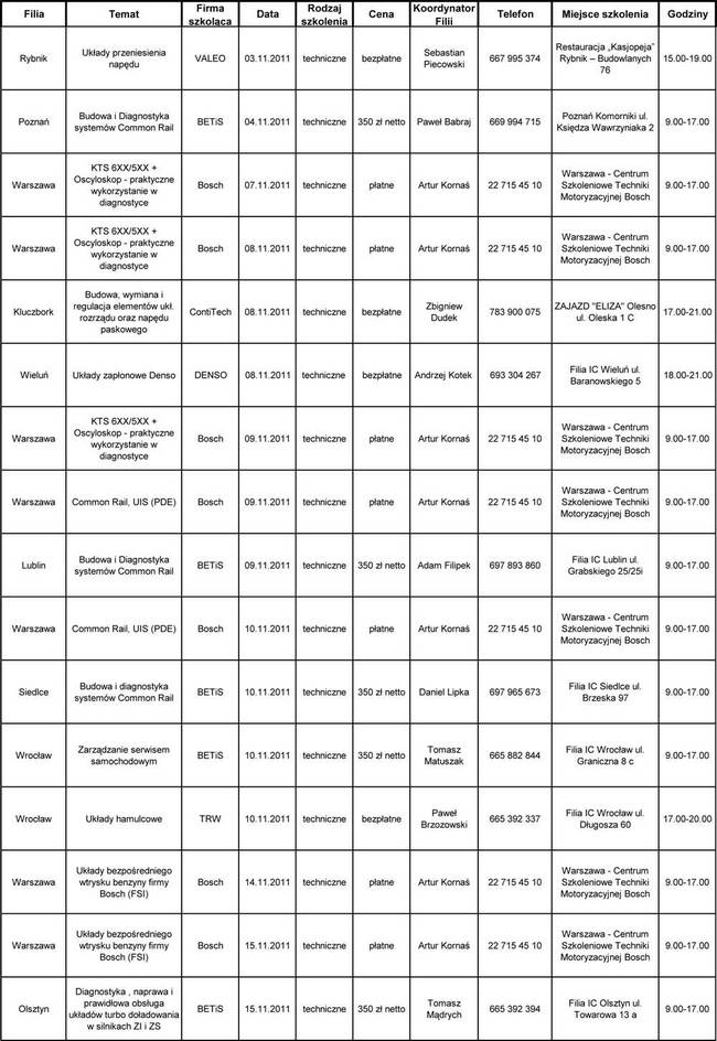 Zgłoszenia na szkolenia Inter Cars przyjmują i udzielają dodatkowych informacji podani w poniższej tabeli koordynatorzy filii.