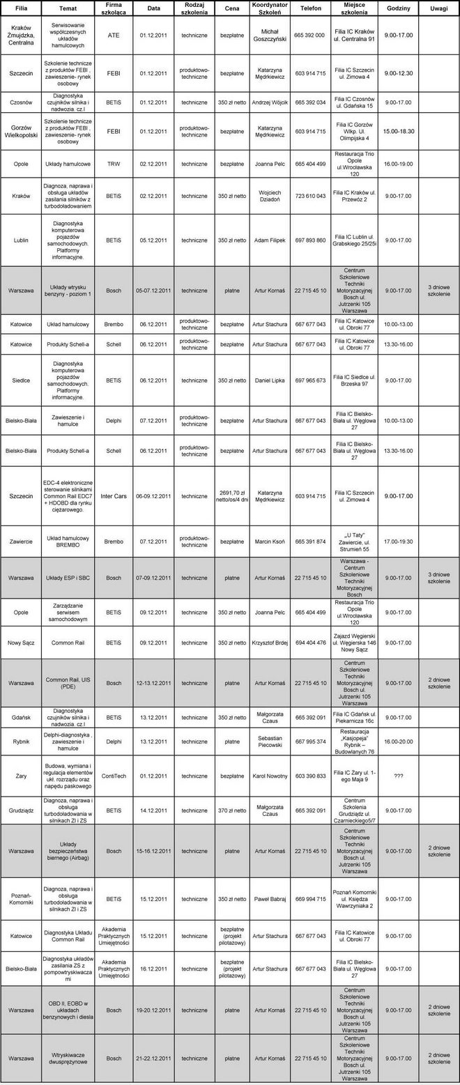 Zgłoszenia na szkolenia Inter Cars przyjmują i udzielają dodatkowych informacji podani w poniższej tabeli koordynatorzy filii.