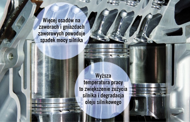 Następstwem zwiększonych temperatur w komorach spalania jest z kolei wzrost średniej temperatury całego silnika, co przyczynia się do zwiększenia zużycia oleju przez jego odparowanie. Zwiększona (w porównaniu z zasilaniem benzynowym) temperatura w komorze spalania to również efekt mniej dokładnego dawkowania gazu, szczególnie w jednostkach napędowych wyposażonych w gazowe układy zasilania I i II generacji. Także nadmierne zubożenie mieszanki prowadzi do podniesienia temperatury silnika i w konsekwencji sprawia, że w konwencjonalnym oleju następuje degradacja dodatków antykorozyjnych i detergująco-dyspergujących. Na skutek tego zwiększa się ryzyko wystąpienia korozji smarowanych powierzchni i odkładania osadów i szlamów na elementach układu smarowania.