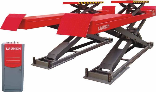 Stanowisko do kontroli geometrii z zastosowaniem najazdowego podnośnika nożycowego |