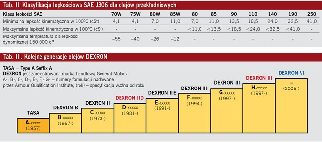 Również amerykanie, opierając się na klasyfikacji lepkościowej SAE J300 dla olejów silnikowych, wprowadzili osobną klasyfikację lepkościową SAE J306 dla olejów przekładniowych (tabela II).