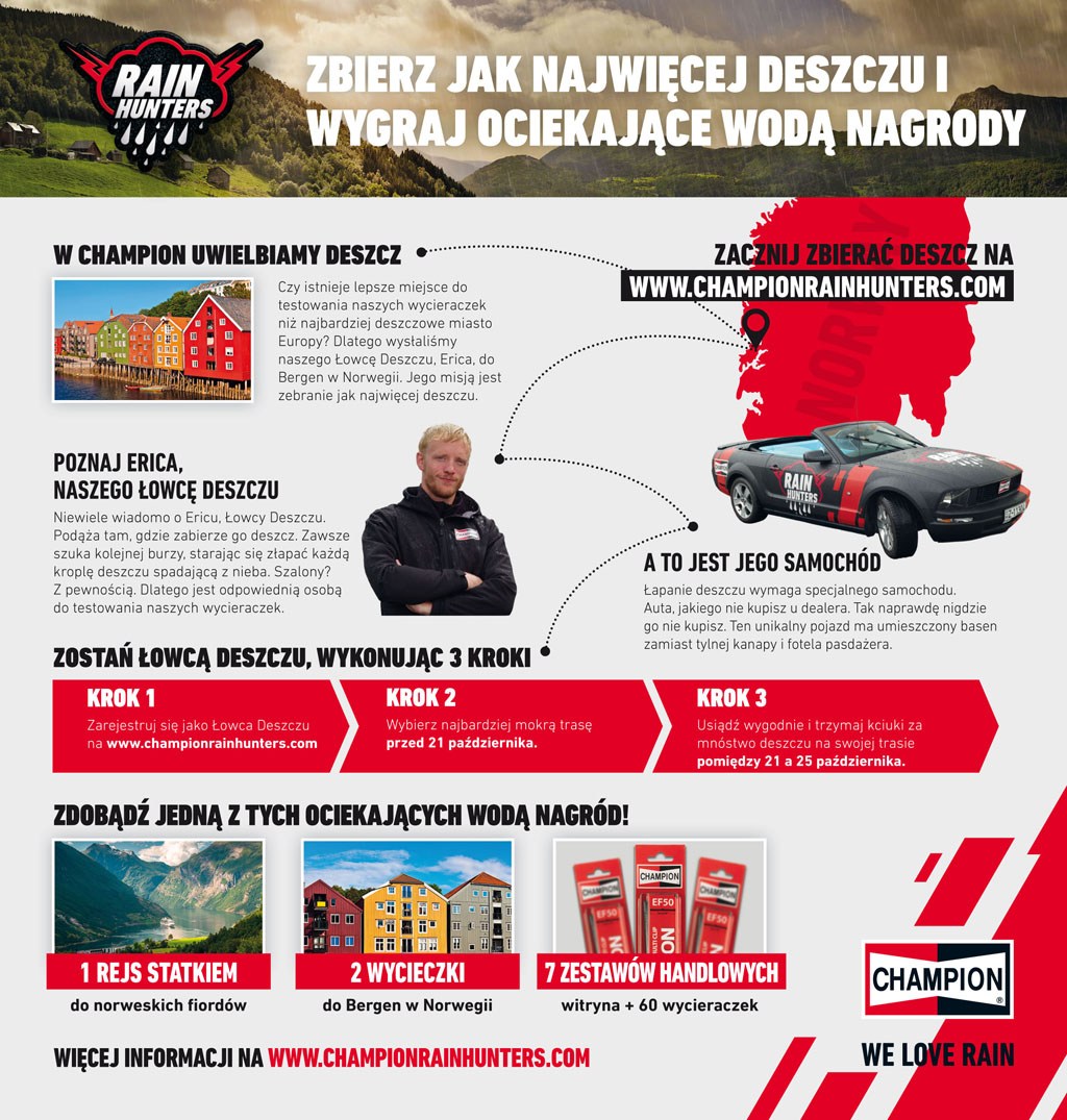 Osoby chcące wziąć udział w zabawie powinny przed 21 października zarejestrować się na stronie www.championrainhunters.com i wskazać na mapie Europy i Azji trasę, na której wystąpią największe opady deszczu między 21 a 25 października. W wyborze pomaga internetowy serwis meteorologiczny accuweather.com. Później wystarczy poczekać i spradzić, czy przewidywania się potwierdziły.