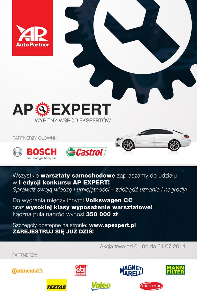 Akcja AP Expert jest prowadzona przy wsparciu partnerów głównych – Boscha i Castrola – oraz firm Continental Contitech, Febi, Magneti Marelli, Mann Filter, Textar, Valeo i Delphi.