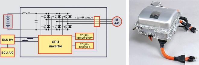 Inwertor generuje prąd trójfazowy o modulowanej częstotliwości zarówno przy zasilaniu z alternatora, jak i akumulatora