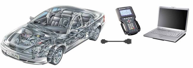 Rys.: Diagnostyka samochodowych układów elektronicznych może być przeprowadzona za pomocą specjalnych urządzeń zwanych testerami diagnostycznymi lub za pomocą komputera z odpowiednim oprogramowaniem