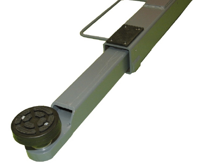 Zawiasowe mocowanie nasady ramion umożliwia ich kątowe wychylanie w płaszczyźnie poziomej, konieczne przy wsuwaniu ich pod podwozie pojazdu i naprowadzaniu wspomnianych wsporników pod cztery miejsca wyznaczone w instrukcji napraw danego modelu pojazdu. Do tego drugiego celu służy też równocześnie sama budowa ramion, umożliwiająca ich teleskopowe roz suwanie na potrzebną długość.