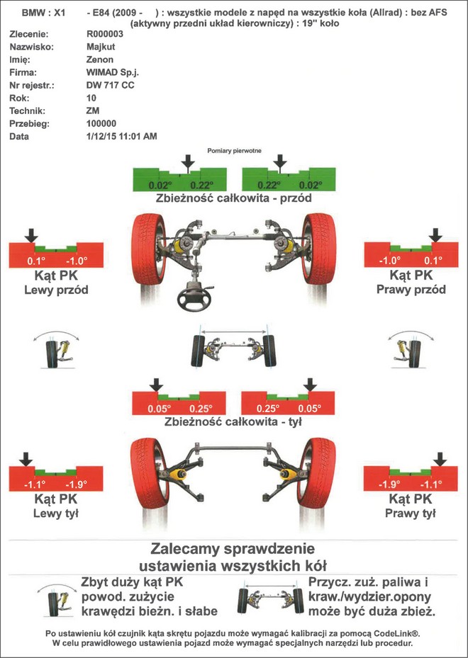 Czy takie wyniki pomiarów ustawienia kół rzeczywiście pozwalają uznać niesprawność samochodu za drobną? |