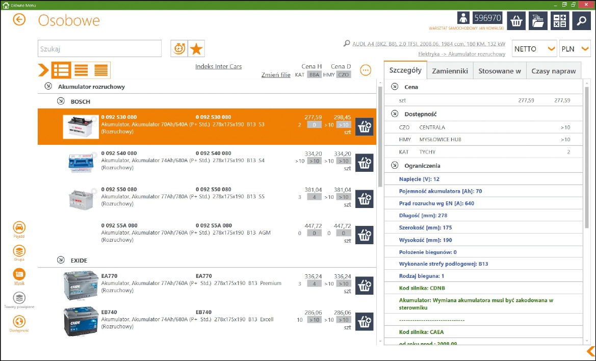 Mniej czasu zajmuje teraz poszukiwanie konkretnych towarów, ponieważ ułatwiają to tematycznie specjalizowane wyszukiwarki, m.in. opon i akumulatorów. Kryteria wyszukiwania można dowolnie zawężać. Nowością jest także możliwość obsługi wyszukiwania w trybie graficznym.