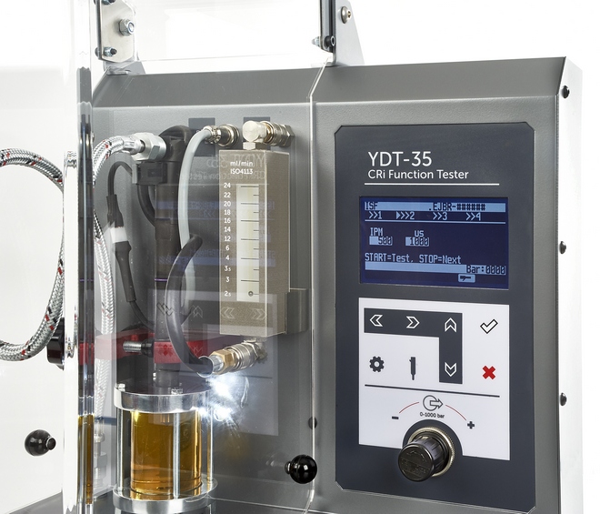 Czas trwania testu jest krótszy niż pięć minut, a cała procedura składa się z siedmiu kroków. YDT-35 wykrywa czy wtryskiwacz może osiągnąć podstawowe parametry mechaniczne i elektryczne.