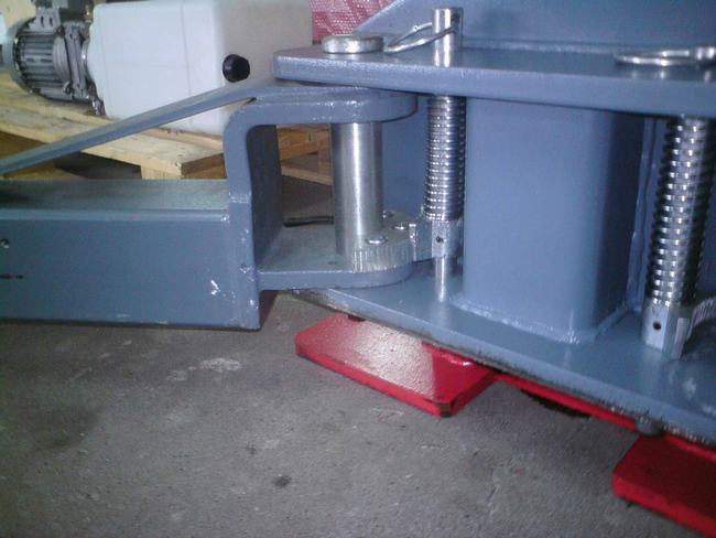 | Konstrukcje podnośników samochodowych posiadające ramiona przegubowe w elementach przenoszących obciążenie powinny być wyposażone w zabezpieczenia uniemożliwiające przypadkowe przesunięcie się ramion. Zabezpieczenia te powinny działać na zasadzie samohamowności lub posiadać połączenia kształtowe. | ||