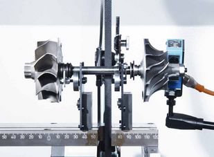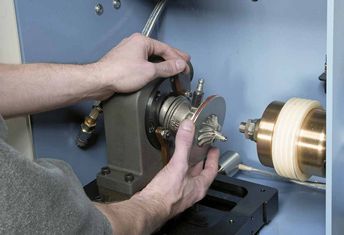 | Rys.: Kompletny rdzeń turbosprężarki | Rys.: Końcowe wyważanie rdzenia turbosprężarki za pomocą doważarki |