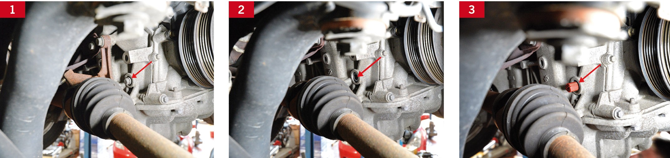 W jej fazie wstępnej zdejmuje się prawe koło przednie i jego osłonę (nadkole), a także zbiornik układu wspomagania (bez odłączania przewodów) i alternator oraz elastyczne paski napędu pomocniczego, które w tym celu przecina się nożem lub tnącymi szczypcami, albo usuwa za pomocą specjalnego paska z zestawu narzędzi ContiTech Uni Tool Elast.