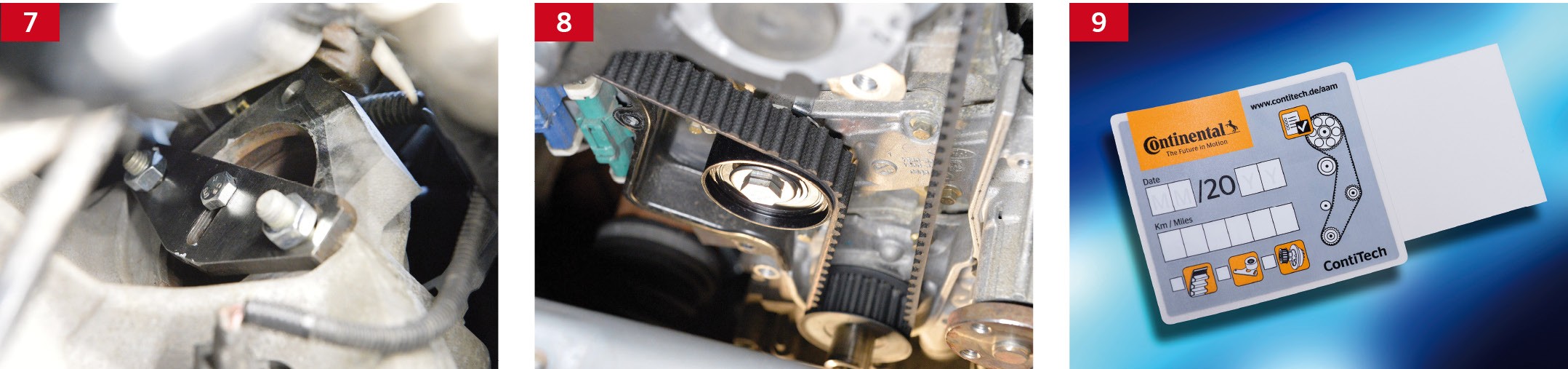 Wymianę oryginalnego paska rozrządu ContiTech powinno się zapisać na dostarczonej naklejce i umieść ją w komorze silnika (fot. 9).