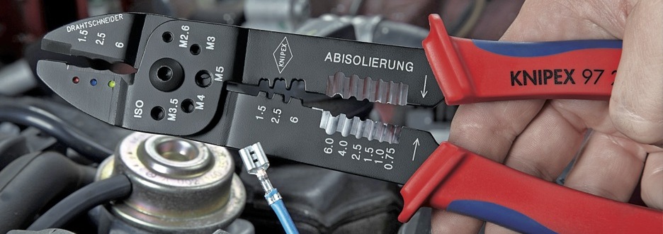 Wielofunkcyjne szczypce przeznaczone są do cięcia i odizolowywania przewodów oraz zagniatania złączek kablowych. Narzędzie wykonane z hartowanej blachy stalowej ma wygodny uchwyt z tworzywa sztucznego. Wyposażono je w dwa rodzaje płynnie tnących ostrzy (do przewodów aluminiowych i miedzianych) oraz otwory przeznaczone do cięcia wkrętów miedzianych i mosiężnych o średnicach M 2,6/3,0/3,5/4,0 i 5,0 mm. Konstrukcja szczypiec wraz z naniesioną numeracją umożliwia łatwe i dokładne zgniatanie złączek izolowanych 1,5/2,5/6,0 mm2 i nieizolowanych nasuwanych 1,5/2,5/6,0 mm2. Specjalne szczęki usprawniają zdejmowanie izolacji z przewodów 0,75/1,0/1,5/2,5/4,0/6,0 mm2.