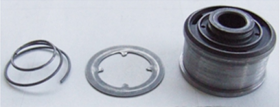 Rys. 8. Tłok dwustronny z przesuwną blaszką zaworu i sprężyną stożkową |