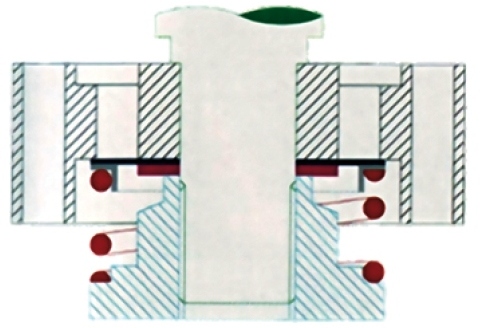 W systemie nieco bardziej skomplikowanym (rys. 3 i 4) pomiędzy elementem zamykającym a tłokiem zostanie umieszczona blaszka (przesuwna lub elastyczna) poprawiająca szczelność zaworu.