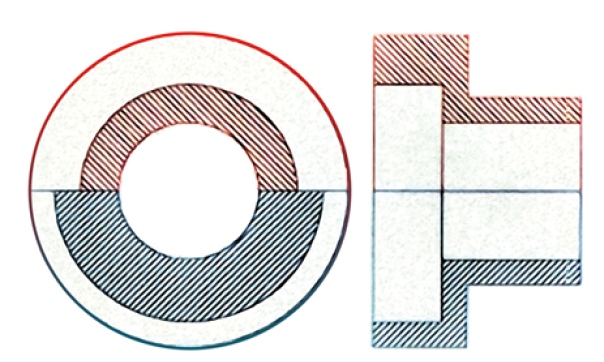 Rys. 3. Widok z góry i przekrój poprzeczny dwóch elementów zamykających |