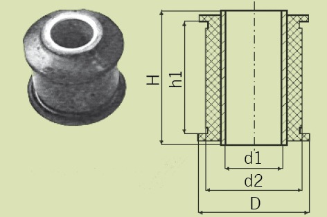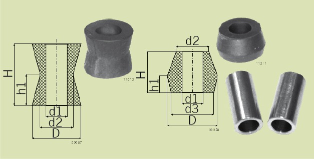Rys. 2. W oczkowych końcówkach amortyzatorów umieszcza się zwykle baryłkowe lub wrzecionowe wkładki gumowe z przelotowymi tulejkami dla poprzecznych śrub |
