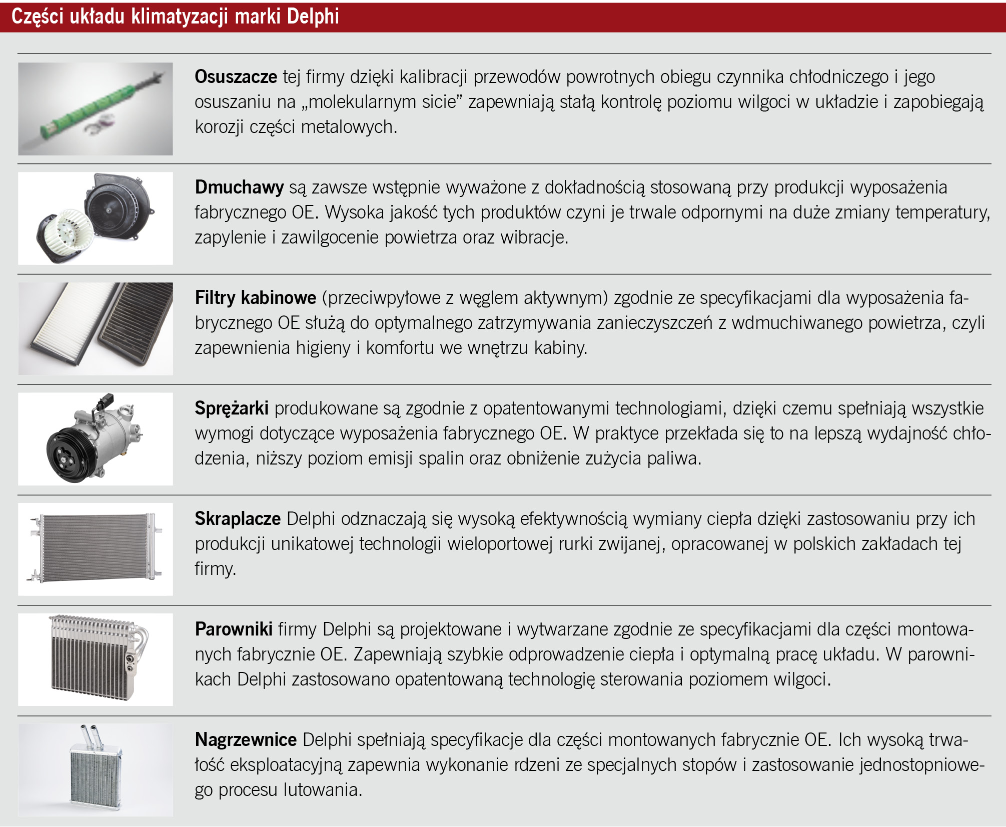 Dostarczane przez Delphi elementy układu klimatyzacji i chłodzenia silnika montowane są jako wyposażenie fabryczne w samochodach takich marek, jak: BMW, Chrysler, Ferrari, Fiat, Maserati, Mercedes, PSA Peugeot Citroën, Renault i Volkswagen.