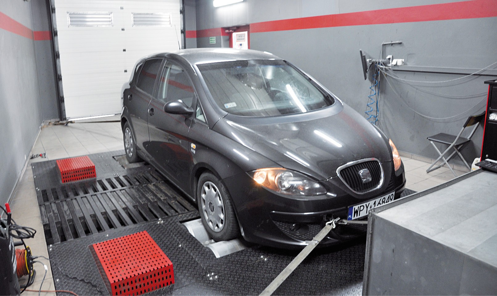Badania przeprowadzano na hamowni w warsztacie specjalizującym się w naprawach samochodów z grupy Volkswagena.