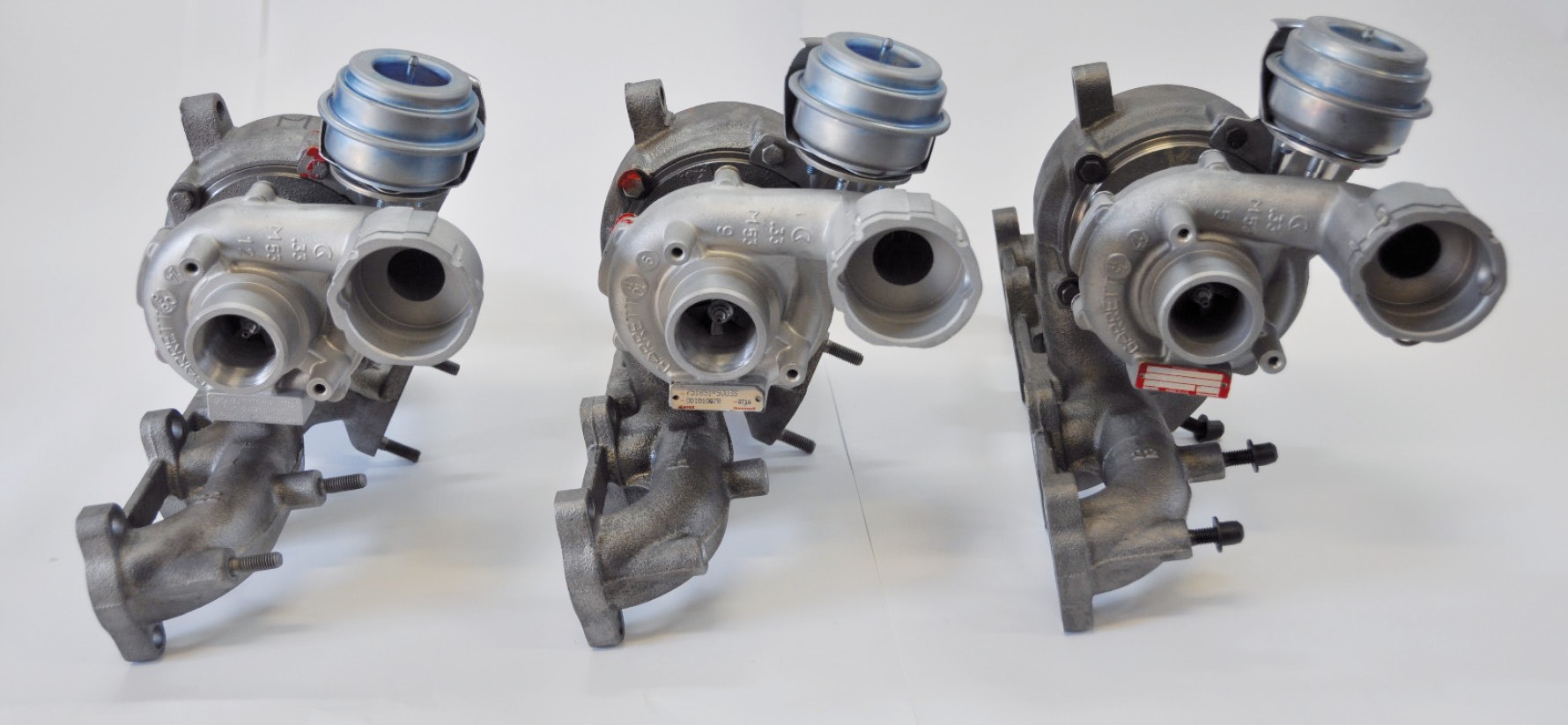 Oferowanym na rynku rozwiązaniem alternatywnym są turbosprężarki regenerowane z użyciem nieoryginalnych części zamiennych produkcji chińskiej lub produkcji europejskiej. Dlatego testom poddano: turbosprężarkę Garrett Oryginal Reman, analogiczny podzespół regenerowany za pomocą części azjatyckich oraz trzeci – regenerowany zamiennikami europejskimi. Ich wygląd zewnętrzny jest niemal identyczny (fot. 2).