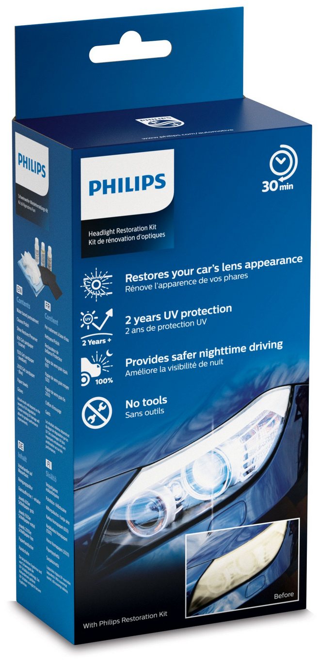 Oferowany przez Philipsa zestaw do renowacji reflektorów pozwala usunąć smugi i przebarwienia. Operacja nie wymaga użycia elektronarzędzi i nie powinna zająć więcej niż 30 minut.
