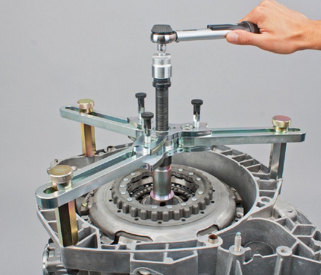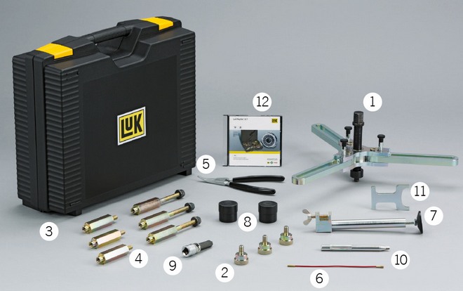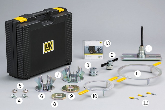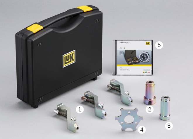 W ramach demontażu podwójne sprzęgło musi być zdjęte z wałka sprzęgłowego skrzyni biegów i wciśnięte nań ponownie w trakcie montażu. Ponadto sprężyny zwrotne muszą być prawidłowo wyregulowane, a blokady transportowe sprzęgieł K1 i K2 rozpięte podczas montażu. Dlatego firma Schaeffler Automotive Aftermarke opracowała modułowy system montażowych narzędzi specjalnych, przystosowanych do obecnych i przyszłych modeli suchych podwójnych sprzęgieł marki LuK. Poszczególne moduły systemu są ze sobą kompatybilne.