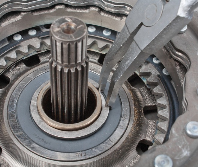 Kolejną czynnością jest montaż modułu łożysk zasprzęglających K1 i K2. Są one ze sobą trwale połączone i nie powinny być rozdzielane. Dają się zamontować tylko w jednym położeniu.