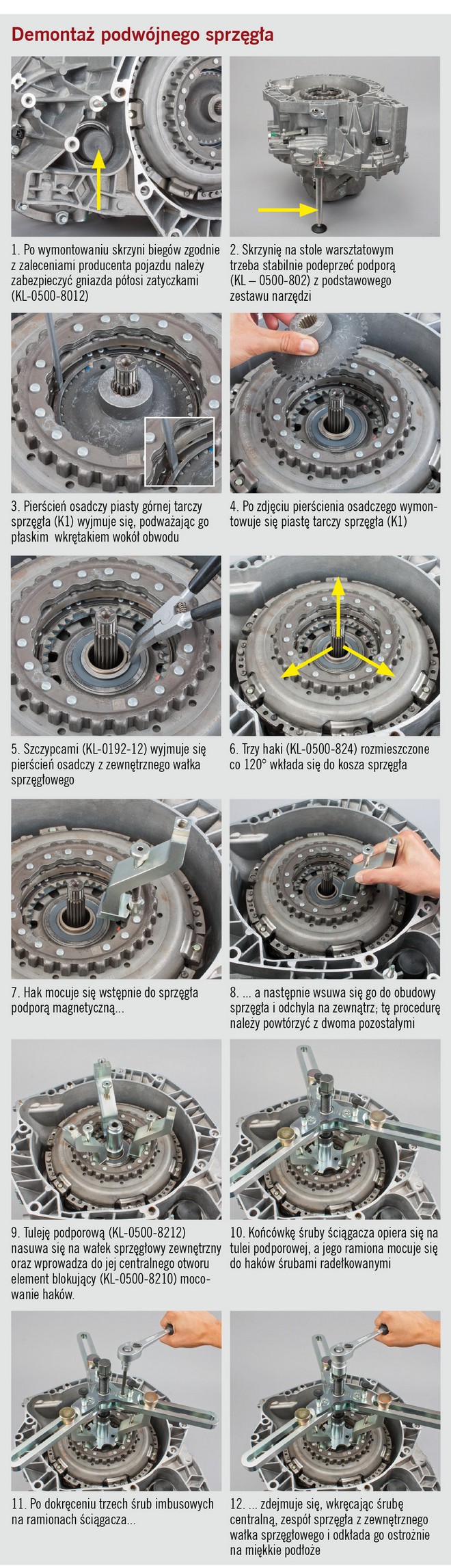 Wykonywanie jakichkolwiek napraw związanych z podwójnym sprzęgłem suchym powinno być poprzedzone jazdą próbną, szczegółowym wywiadem z użytkownikiem samochodu i odpowiednią diagnostyką.