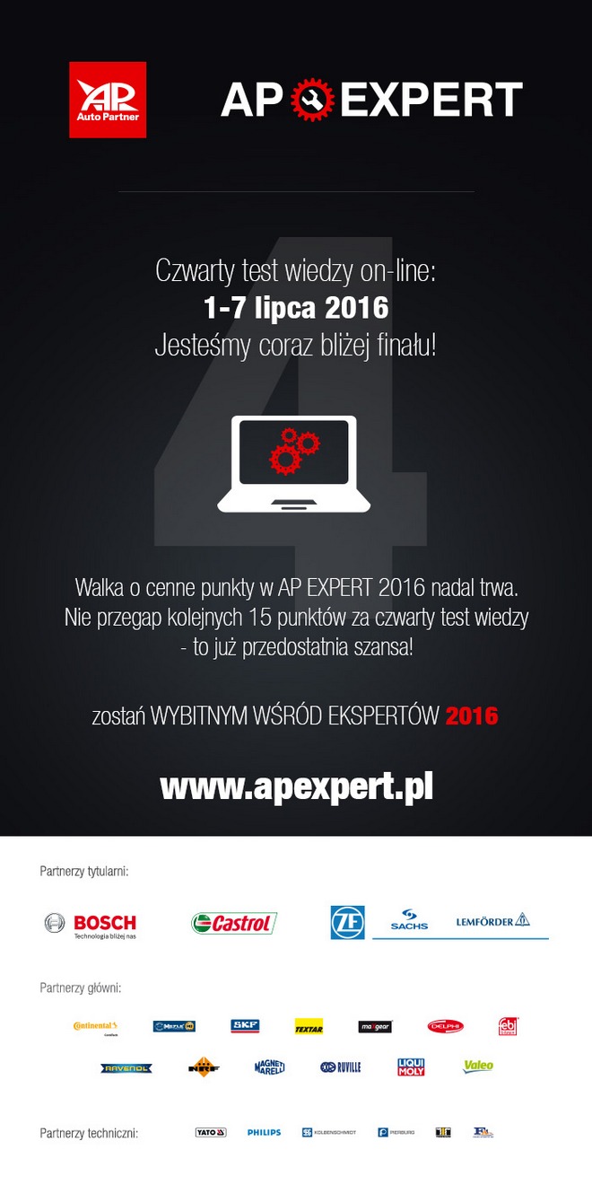 Promocja AP Expert rozpoczęła się 1 marca 2016 roku. Od tego dnia uczestnicy mogą zbierać punkty za zakupy specjalnie premiowanych towarów partnerów akcji. Dodatkowo w pierwszych dniach promocyjnych miesięcy na platformie www.apexpert.pl udostępniane są testy wiedzy online z zakresu mechaniki i elektromechaniki samochodowej.